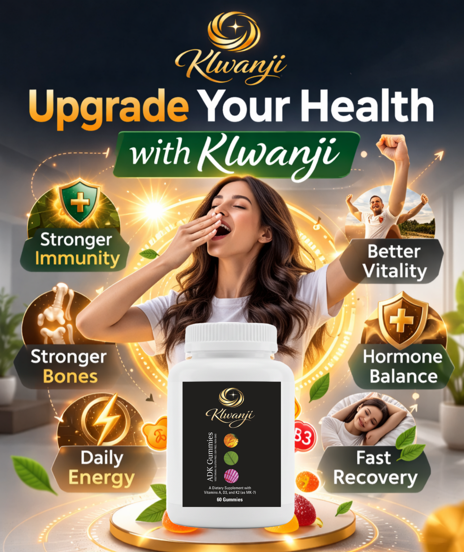 Klwanji ADK Gummies – Vitamin A + D3 + K2 (MK-7) Premium Daily Wellness Formula (60 Gummies)